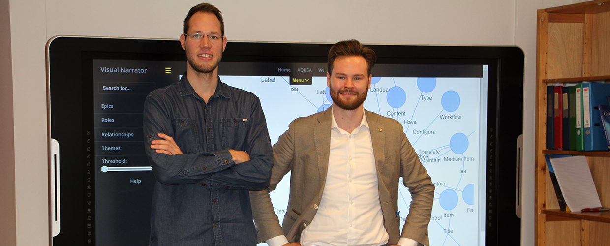 Via hoogleraar Sjaak Brinkkemper kwam Govert-Jan in contact met Garm die promotieonderzoek doet naar manieren om software te verbeteren aan de hand van wensen en eisen van gebruikers. Garm had na een eerste kennismaking wel oren naar verdere samenwerking. “Govert-Jan vindt ontwerpen leuk, ik minder. Dus dat was een mooie aanvulling.”