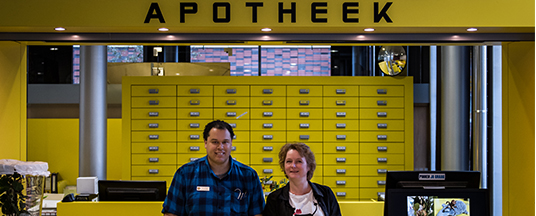 Teamleider Christa Hendriksen is maar wat blij met de nieuwe kracht die de apothekersassistenten sinds afgelopen mei vier dagen per week veel werk uit handen neemt. “Van mij mag er zo nog een Ferrell bijkomen. Hij levert echt tijd op.”
