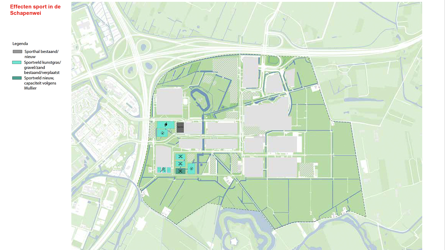 The plan to place two windmills and solar fields in the USP was the target of much criticism. The idea is to place the windmills next to the A28 highway. Those living in Rijnsweerd, an adjacent neighbourhood, are concerned about noise pollution, cast shadow and other health consequences. The municipality reacted by emphasising that extensive research into the nuisance and effects on health and the landscape will be carried out before the plan goes ahead. Although the intersection of the highway with the Rijnsweerd interchange, nearby the sports complex, is a crucial location, sports associations do not think that the cast shadow or the noise will cause any nuisance.