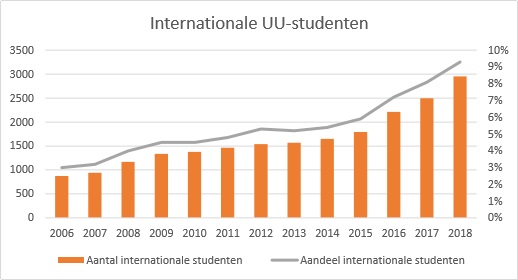 Additionally, the total number of international students at the UU has more than doubled in the past ten years. Nuffic data shows that especially the UU Master’s programmes draw many internationals. There are three thousand international UU students, and two out of every three of them are doing a Master’s programme.