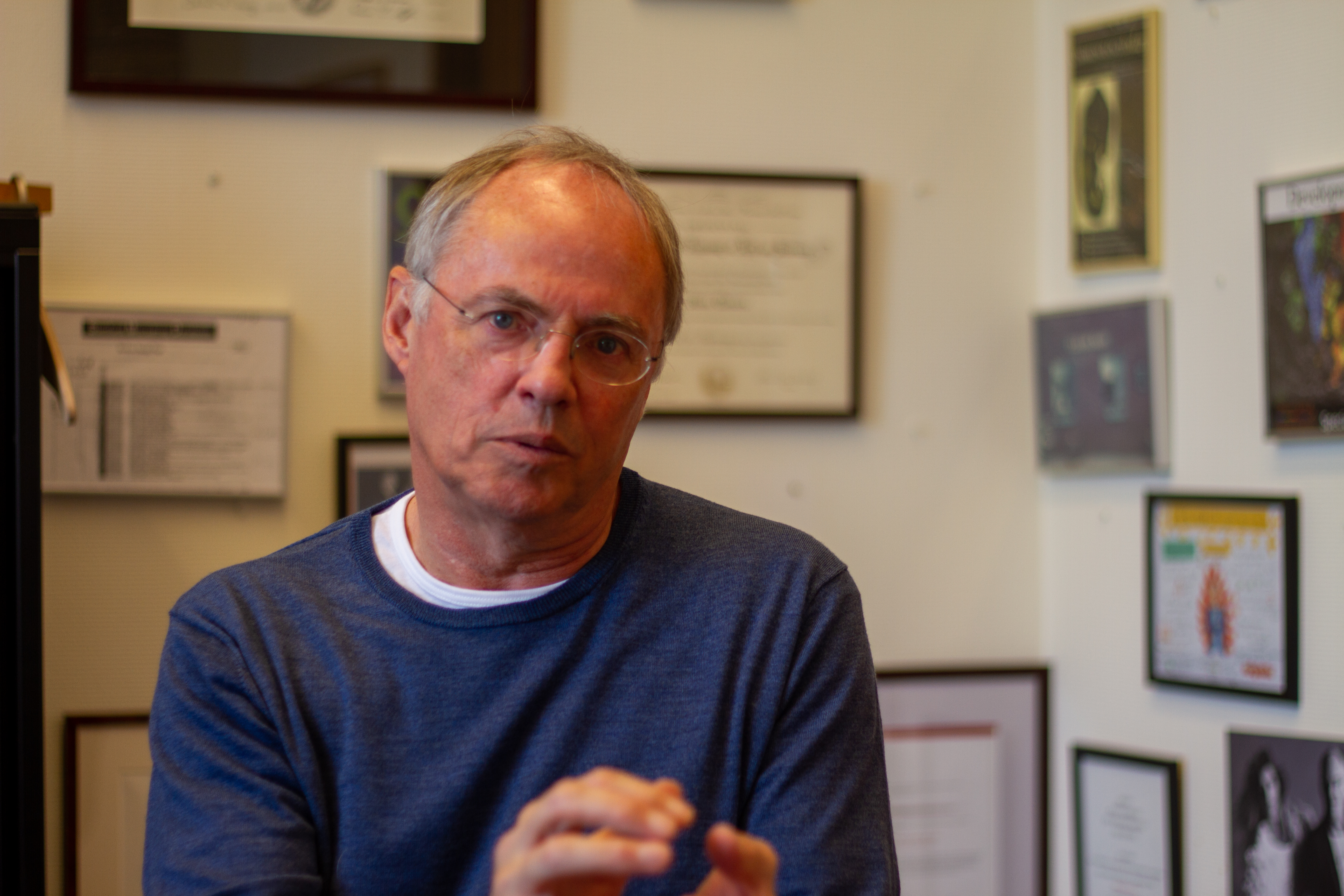Hans Clevers op zijn werkkamer op het Hubrecht Instituut, Foto Floris van Bodegraven/DUB