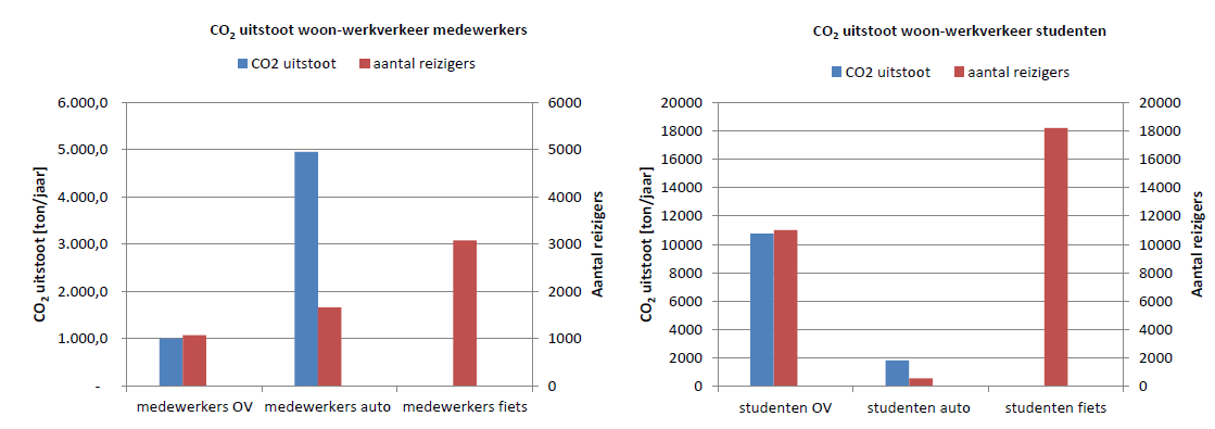CO2-uitstoot woon-werkverkeer van en naar de UU. Bron: 'Informatiedocument voor de stuurgroep CO2', januari 2017.
