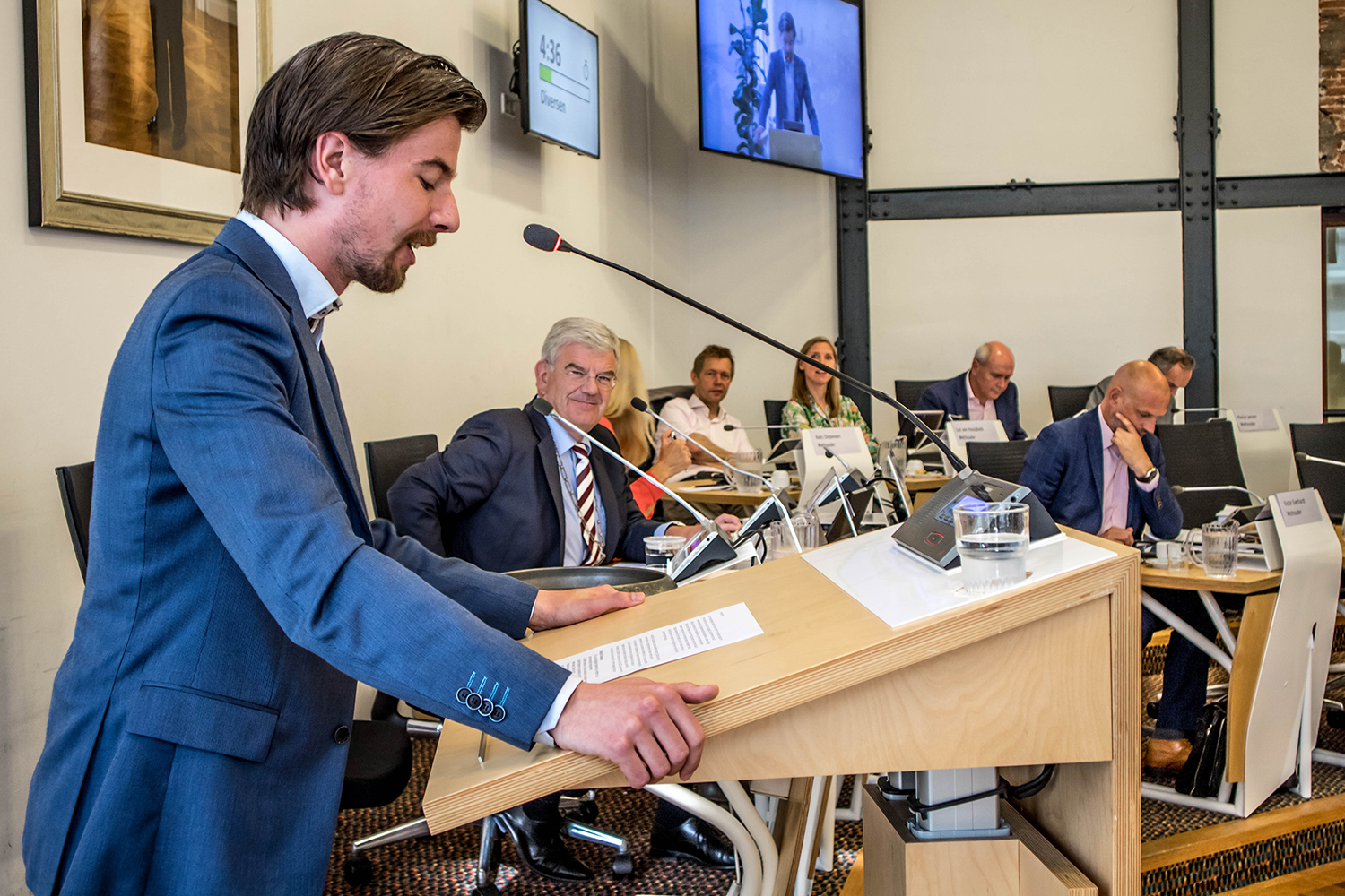Tim Homan (23) is fractievoorzitter van Student & Starter in de Utrechtse gemeenteraad. Hij begon aan de UU met een bachelor Bestuurs- en Organisatiewetenschap (B&O), maar stapte na anderhalf jaar over naar Liberal Arts and Sciences omdat hij toch een beetje de diepgang miste. Wat zijn de morele afwegingen van een politicus en waarop baseert hij die? Dat thema zat ook in de thesis ‘Kapitale Uitspraken’ die hij bij Liberal Arts schreef. Die ging over de financiering van politieke campagnes en de invloed op de vrijheid van meningsuiting van politici. In zijn laatste vak bij B&O schreef hij een paper met zijn maatje Joost Monster over PvdA-leider Samsom, zijn weg omhoog en naar beneden. Hij analyseerde het politieke leiderschap. Dankzij hoogleraar Paul ’t Hart is die paper toen gepubliceerd op een blog. Nu is hij zelf politiek leider van een kleine partij en mag hij de luidspreker zijn voor studenten, starters en andere Utrechters. Naast politiek bedrijven, schrijft Homan graag en maakt hij muziek met zijn band Vergangenheit waarmee hij in Amsterdam de prijs ‘Q’s Best’ won voor bands die oefenen in de Q Factory.