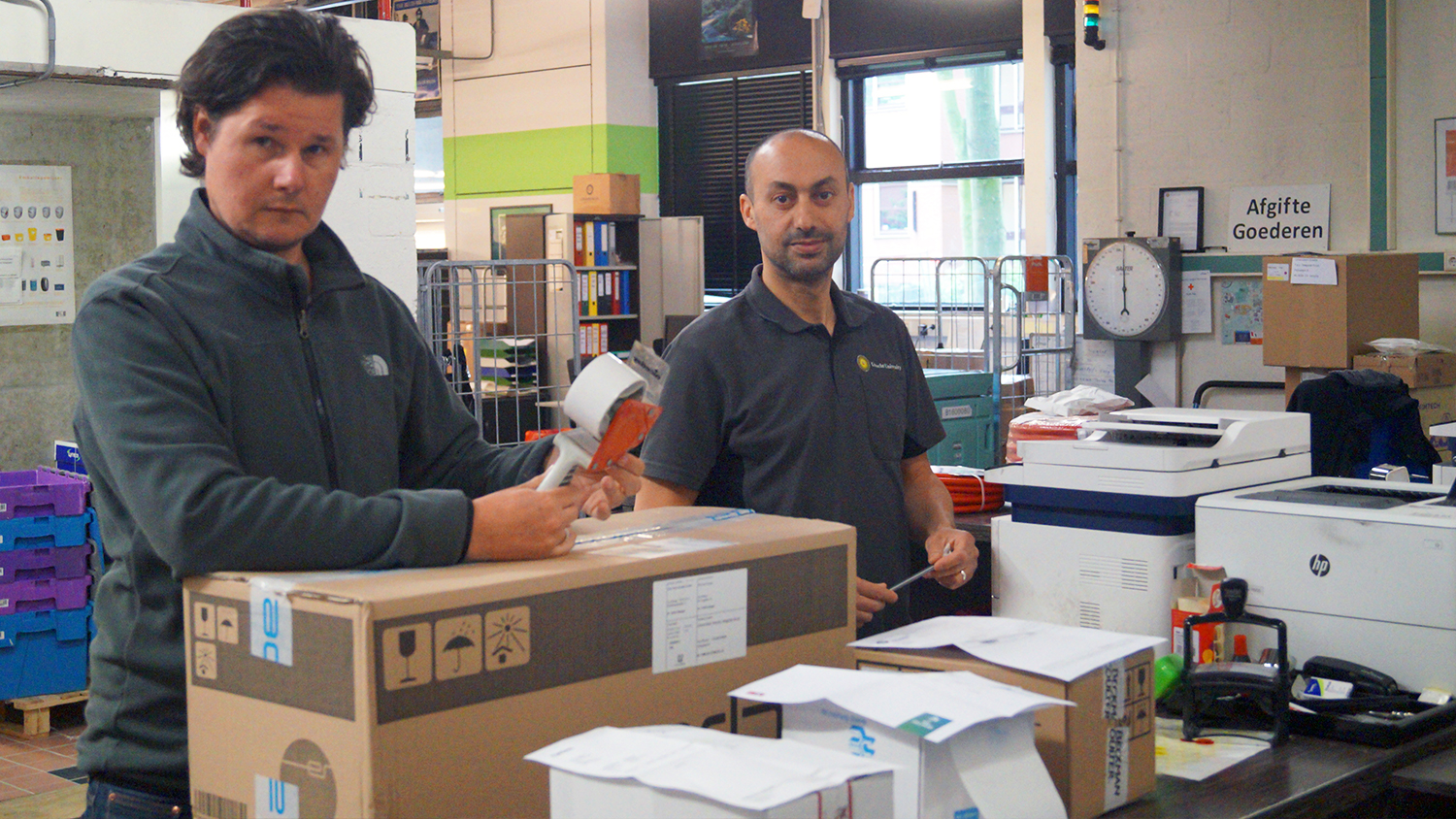 Niels van Bokhorst (35) en Said Maatougui (49), medewerkers goederenontvangst