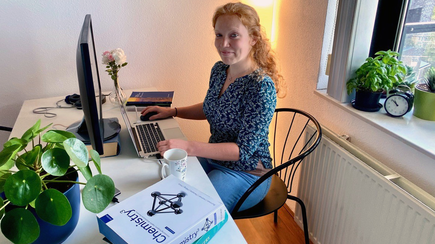 Voorlopig heeft ze thuis nog genoeg te doen en is de rust daar ook wel prettig. Het labwerk heeft plaats gemaakt voor schrijfwerk en het maken van theoretische berekeningen. Ze denkt ook veel na over hoe ze straks de laatste proeven zo efficiënt mogelijk kan uitvoeren. “Ik moet sowieso veel schrijven aan mijn manuscripten en proefschrift, daar word ik nu veel minder bij afgeleid.”
