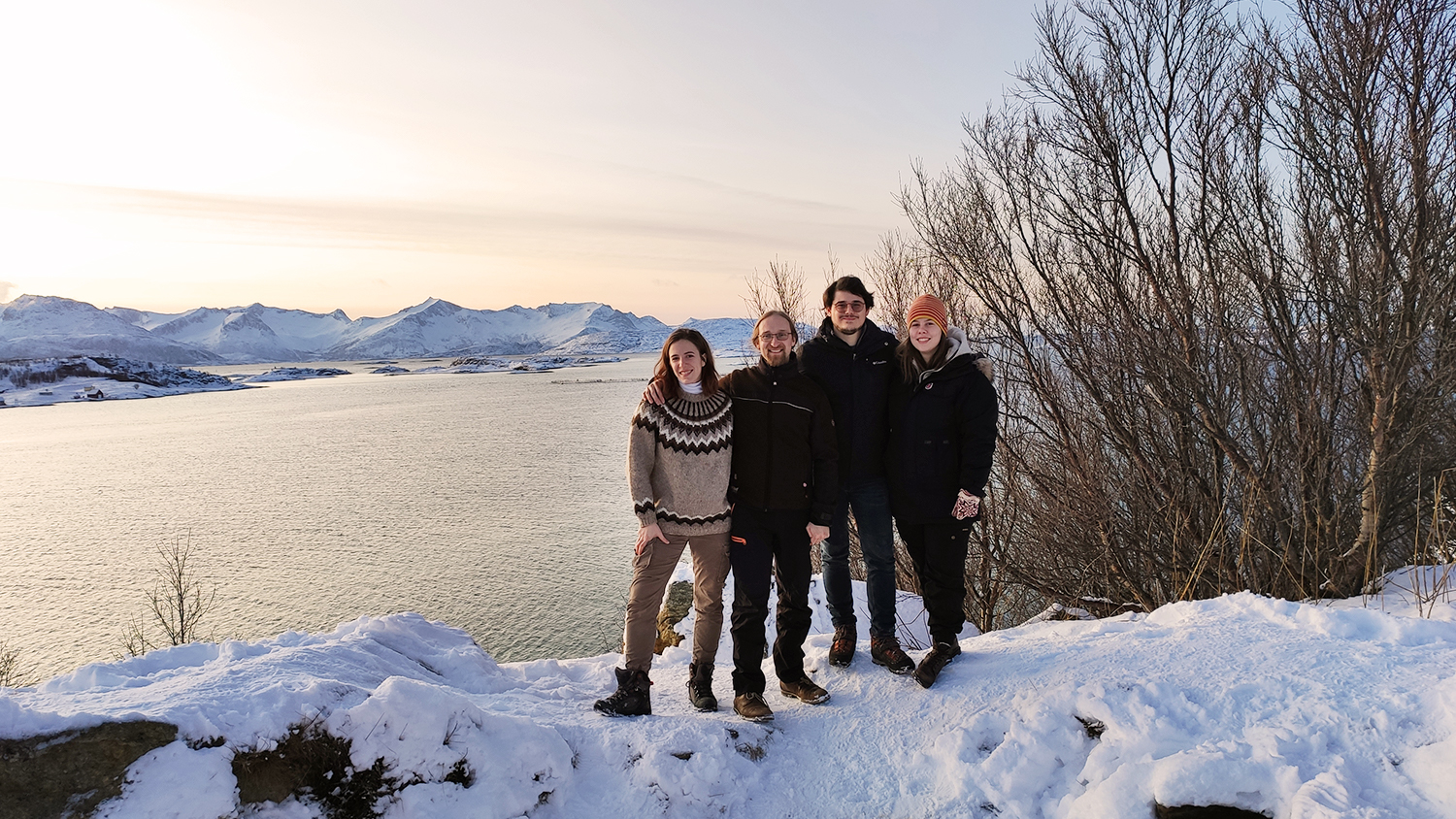 Alice (links) in Noorwegen met een door haar zelf gebreide trui.