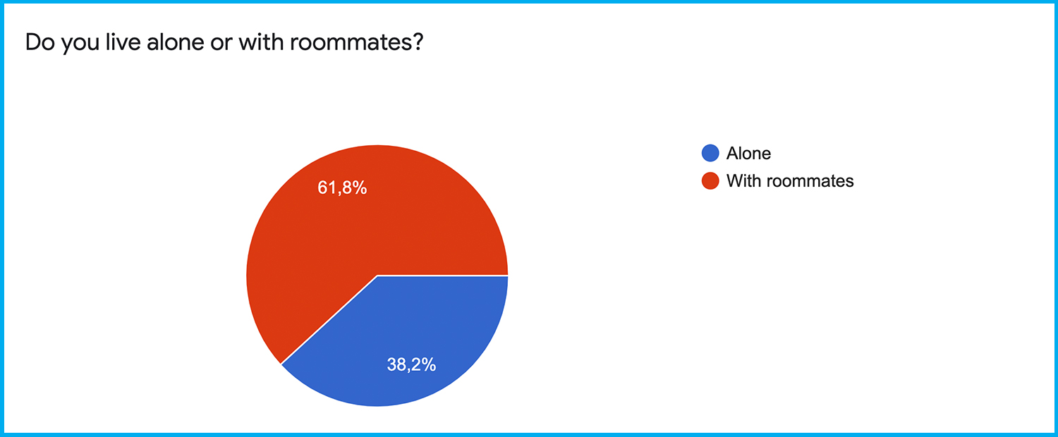Omdat het vinden van huisvesting een groot probleem is in Utrecht, vroegen we de internationale studenten om ons te vertellen over hun thuissituaties. Van hen woont 61 procent op kamers in een huis van een particuliere huisbaas. Verrassend genoeg gaf meer dan de helft van de enquête-respondenten aan dat het hen slechts een maand had gekost om hun eerste woning in de stad te vinden. Dat terwijl volgens de laatste enquête van Internationale Studenten Huisvesting (ISHA) de gemiddelde duur van een zoektocht naar een kamer van 4,1 weken in 2018 is gestegen naar 6,6 weken in 2019.