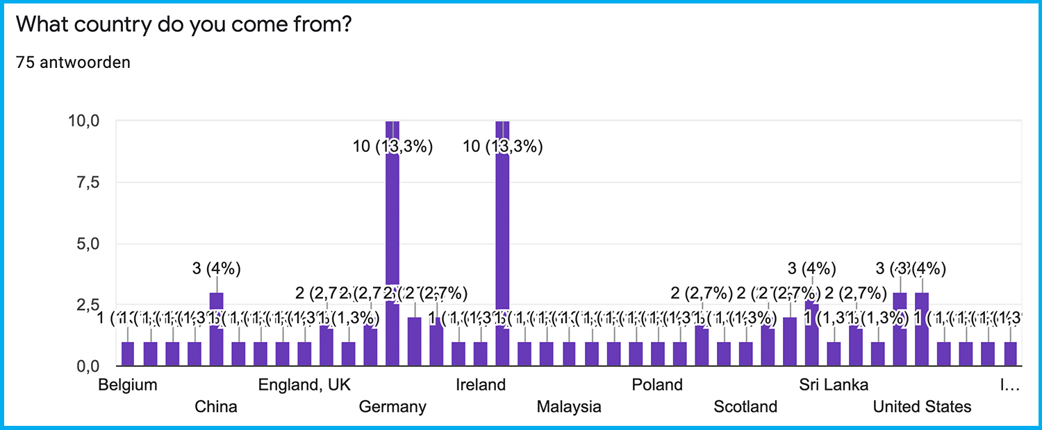 Vooropgesteld: onze enquête is niet representatief. We kregen 78 ingevulde vragenlijsten binnen terwijl zo’n 6.000 van de 40.000 UU-studenten uit het buitenland komen. Van deze 6000 is 60 procent vrouw. De meeste internationals volgen een master, er zijn slechts zes geheel Engelstalige bacheloropleidingen, terwijl van de 150 masterstudies er 103 Engelstalig zijn. In 2021-2022 kwamen 31 procent van de inschrijvingen voor Masterstudies en 10 procent van de inschrijvingen voor bachelorstudies van buitenlandse studenten. De meeste internationale studenten in Nederland komen uit Duitsland en Italië.