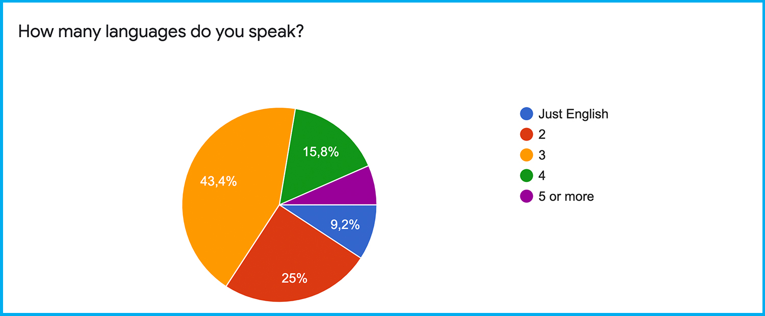 Omdat ze Italiaans, Engels, Duits en Noors beheerst, is Alice bovengemiddeld wat betreft het aantal talen dat de respondenten spreken. Maar meertalig zijn heeft de meerderheid van de respondenten met elkaar gemeen.