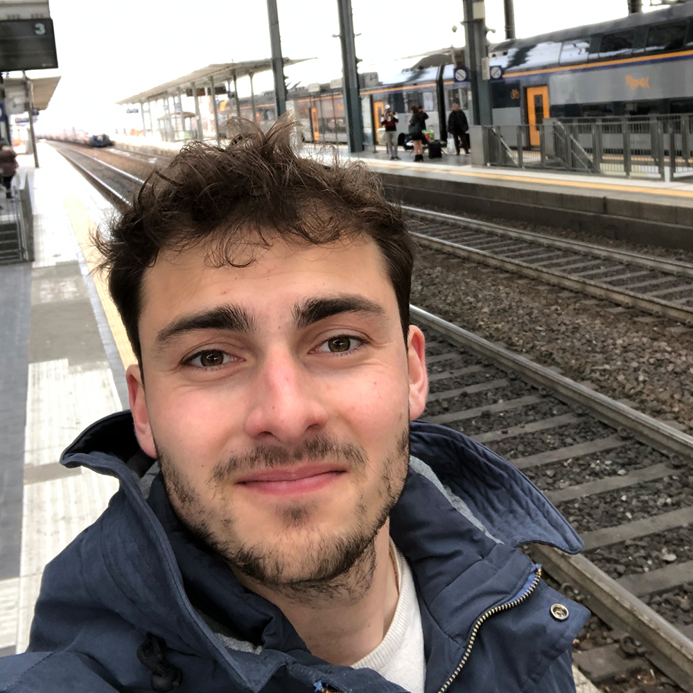 Selfie van rechtenstudent Joost Jansen die maandag de trein nam om in Milaan het vliegtuig te nemen naar huis.