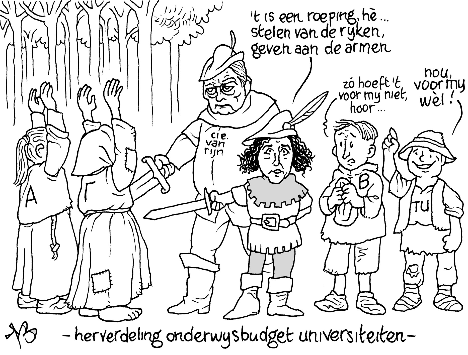 Juni 2019. Nog een geval van plotselinge daadkracht van de minister, bij een onderwerp waarvan je dacht: “denk dáár nu liever eerst even over na”. Al járen werd geroepen dat er een beter financieringssysteem voor het hoger onderwijs moest komen, steeds tevergeefs. Maar in het voorjaar van 2019 bezweek de minister plotseling voor de druk van de technische universiteiten en vond ze dat die op stel en sprong meer geld moesten krijgen. Uiteraard was er niet zomaar meer geld beschikbaar (we spreken van vóór corona), dus de andere universiteiten en dan met name de alfa- en gamma-wetenschappen moesten het maar betalen. Allround-bestuurder Martin van Rijn wilde best een commissie voorzitten die vlot tot hetzelfde advies kwam.