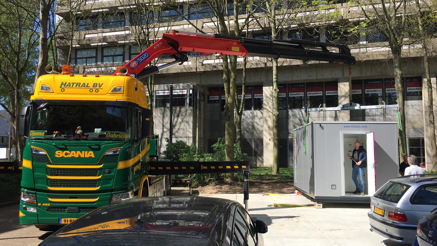 Plaatsing van de eerste tijdelijke klimaatkamer. Foto's: Ilse Schipper-Pols