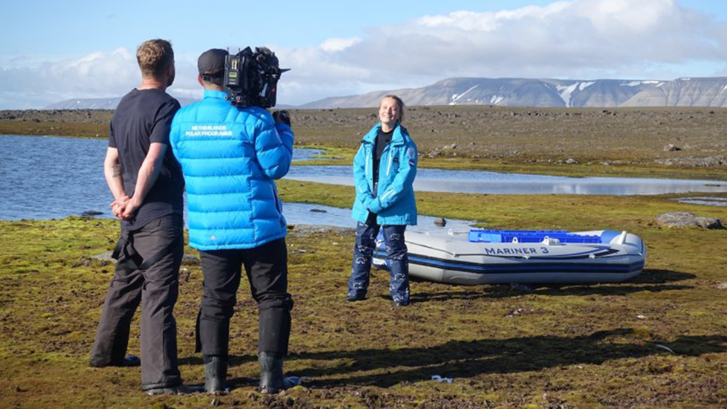 Echter als wetenschapper, moet je objectieve informatie blijven verstrekken (nog zo’n paradox). In de dagen voor, tijdens en na de SEES verschenen er meerdere nieuwsberichten over de expeditie en werd het belang van klimaatengagement belicht. Er kwamen artikelen met foto’s van Wim Hoek, Willem van der Bilt en mij onder andere in dagbladen Trouw en het AD en verschenen we een paar keer op het acht uur journaal van de NOS. Ik werd zelfs al herkend door Nederlandse toeristen toen ik op weg was naar huis. Door deze publiciteit besef ik nu pas dat naast onderzoek doen het heel belangrijk is om je verhaal te delen om te proberen mensen en systemen in beweging te krijgen richting een balans tussen de aarde bewonen en bewaren. Richting een groenere wereld kan ik niet zeggen, want ik had liever Svalbard toch een stuk witter aangetroffen.