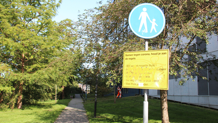 Zelfs op de universiteit waar elke student zijn eigen tafel heeft en de volgende op voldoende afstand staat, zijn er momenten om wat dichter naar elkaar toe te kruipen of om burgerlijk ongehoorzaam te zijn. “Na college wil je nog wat kletsen, maar dan wil je niet naar elkaar hoeven schreeuwen.” En hoewel er op de meeste plaatsen eenrichtingsverkeer is in de gangen, worden de pijlen niet altijd gevolgd. “Als er geen hond in het gebouw is, doe ik dat niet. Zoals de pijlen nu ontworpen zijn, mag je twee kilometer omlopen als je naar de wc moet. Als het drukker wordt, ga ik de pijlen volgen.”