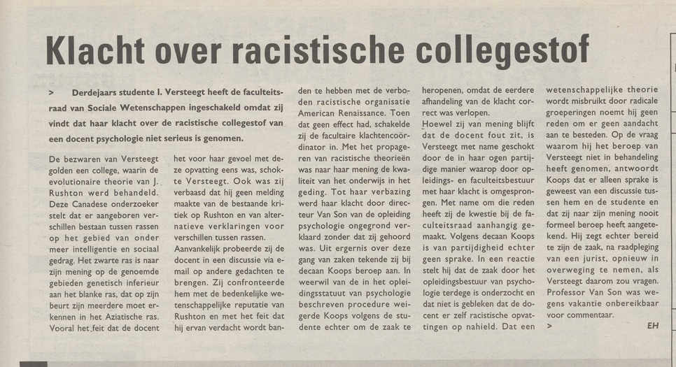 Terugblikken met het Ublad: De rassenleer in een college, mag dat?