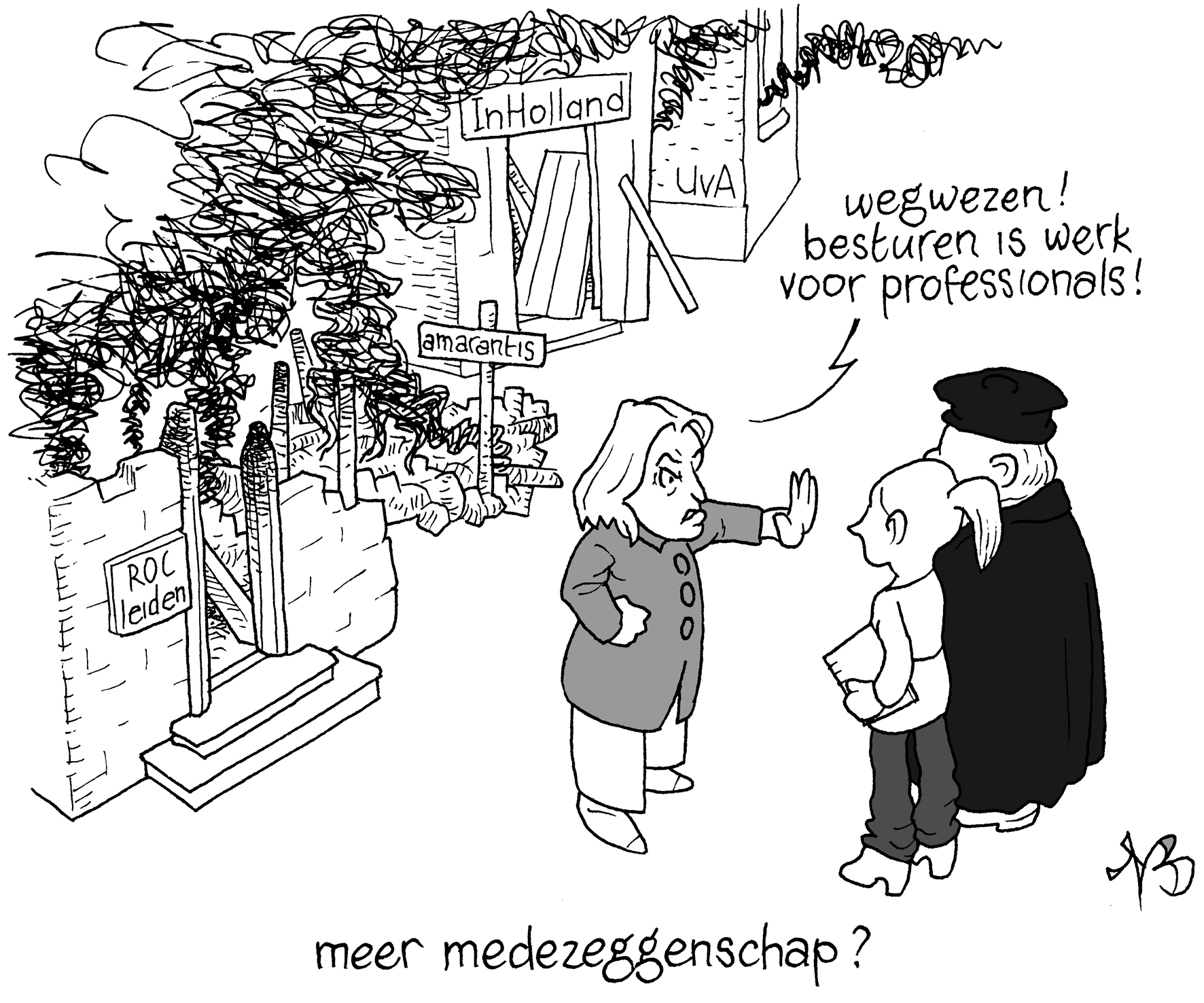 December 2015. Mede naar aanleiding van protesten tegen de bestuurscultuur aan de Universiteit van Amsterdam werd gepleit voor meer zeggenschap van studenten en personeel. Zij zouden de bestuurderen enigszins met de voeten op de (werk)vloer kunnen houden. Bussemaker wilde er niet aan, wat eigenlijk wel raar is voor iemand van sociaal-democratische huize - zal coalitiedwang geweest zijn.
