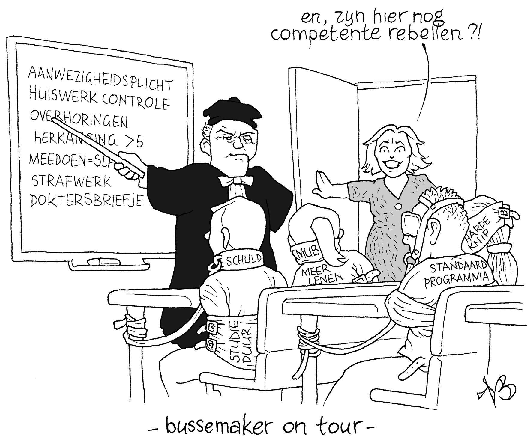 Oktober 2014. Soms vond ik Bussemaker vrijblijvend maar wat roepen. Tijdens een tour langs universiteitssteden hield ze een betoog dat het hoger onderwijs studenten zou moeten vormen tot “competente rebellen”. Mooie gedachte natuurlijk, maar de hedendaagse inrichting van het hoger onderwijs, met al haar beperkende regels en regeltjes, zet nu niet bepaald aan tot rebelsheid – daar deed ze dan weer niks aan.
