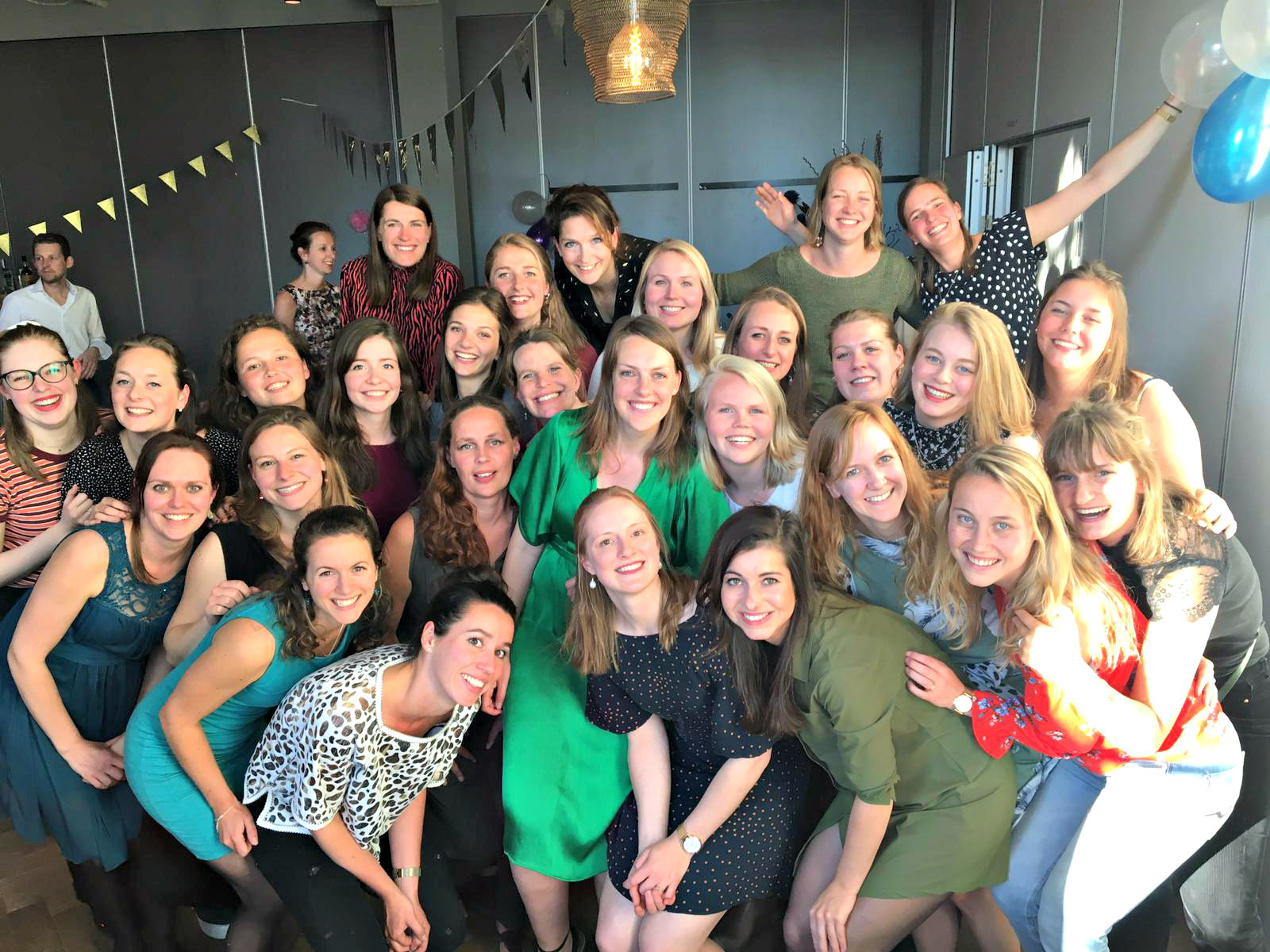 “Ja, wij zijn het enige farmaceutische dispuut dat van heel Nederland is. In 2005 is ons dispuut opgericht door zes vrouwen die het heel leuk hadden met elkaar binnen de KNPSV en dat officieel wilden maken. Elk jaar hebben we een kleine lichting van een of twee meiden per stad, afhankelijk van hoeveel mensen in die stad studeren en hoeveel leden we verwachten dat er afstuderen. We kiezen zelf onze leden; meiden die echt bij ons dispuut passen. Daardoor zijn we een heel hechte groep. Ons oudste lid is ondertussen een jaar of 39. Onze leden hebben in totaal al zo’n 15 baby’s.”
