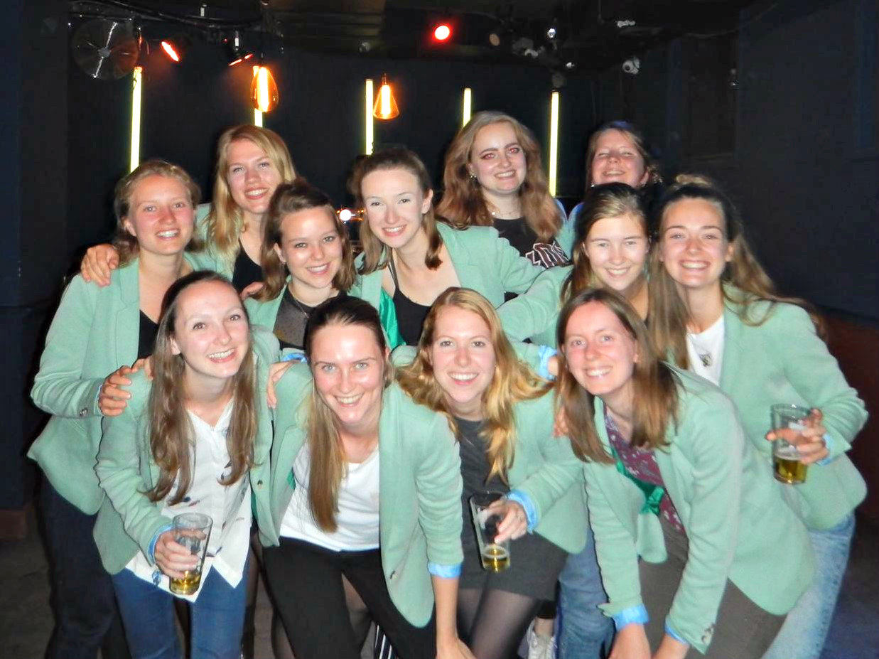 “Twee keer per jaar gaan we een weekendje weg met zo’n 20 tot 25 meiden. We hebben maandelijks een etentje in één van de drie steden. Daar moet soms ver voor worden gereisd en we maken er daarom altijd een feestje van. Je hebt in elke stad een slaapplek. Jaarlijks is er ook een diner voor onze afgestudeerde leden waarbij wel een stuk of veertig mensen aanwezig zijn. Daarnaast hebben we karaokeavonden en doen we ook altijd nog wel iets met een ander faculteitsdispuut.”