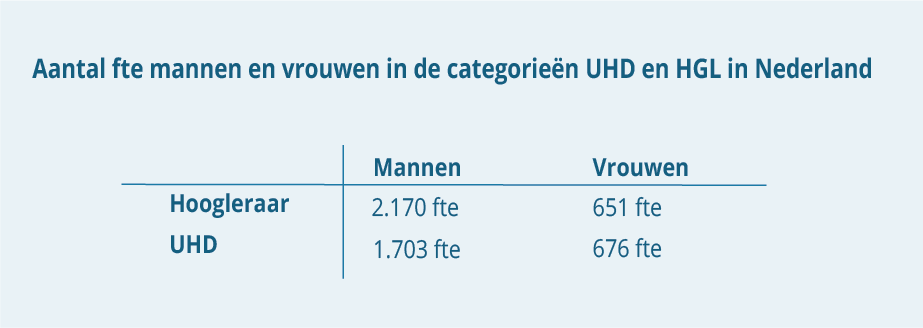 In de aankomende tien jaar gaan er naar verwachting 906 hoogleraren met emeritaat (voor onze beginnende academici: met pensioen). Puur hypothetisch: stel, elke hoogleraar en uhd vervult één fte en je promoveert alle vrouwelijke uhds in Nederland naar hoogleraar. Dan zitten er geen ervaren uhd’s meer in de vijver en moet alsnog 230/906 fte (25 procent) opgevuld worden door mannen. De trend is duidelijk: het is simpelweg niet mogelijk dat gendergelijkheid in de komende tien jaar aan de universiteit in de toonaangevende functies als hoogleraren en uhd’s ook maar wordt benaderd.