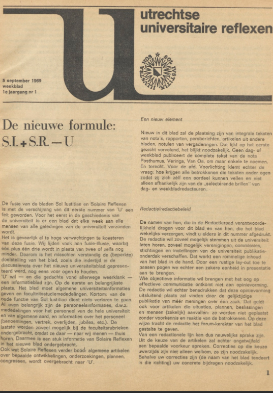 Op 5 september 1969 kreeg de Universiteit Utrecht voor het eerst een onafhankelijk blad: U utrechtse universitaire reflexen. Dit blad kwam voort uit een fusie van twee andere tijdschriften: Sol Iustitiae dat voornamelijk gericht was op studenten en Solaire Reflexen dat meer was bedoeld voor medewerkers. U utrechtse universitaire reflexen was bedoeld voor alle geledingen. Sinds 2023 is Sol Iustitiae ook gedigitaliseerd. Het gaat om de periode 1946-1963.