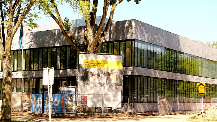 Het pad naar de stalling is klaar en daarom kan de rest van de buitenruimte rondom het Vening Meineszgebouw worden heringericht. Gras, bomen en zitelementen komen bij het gebouw te staan. Wachten is nog op de oplevering van de verbouwing van het Robert J van de Graaf laboratorium, dat na de werkzaamheden het Earth Simulation Laboratory heet en van de aardwetenschappers is die even verder aan de Princetonlaan staat.