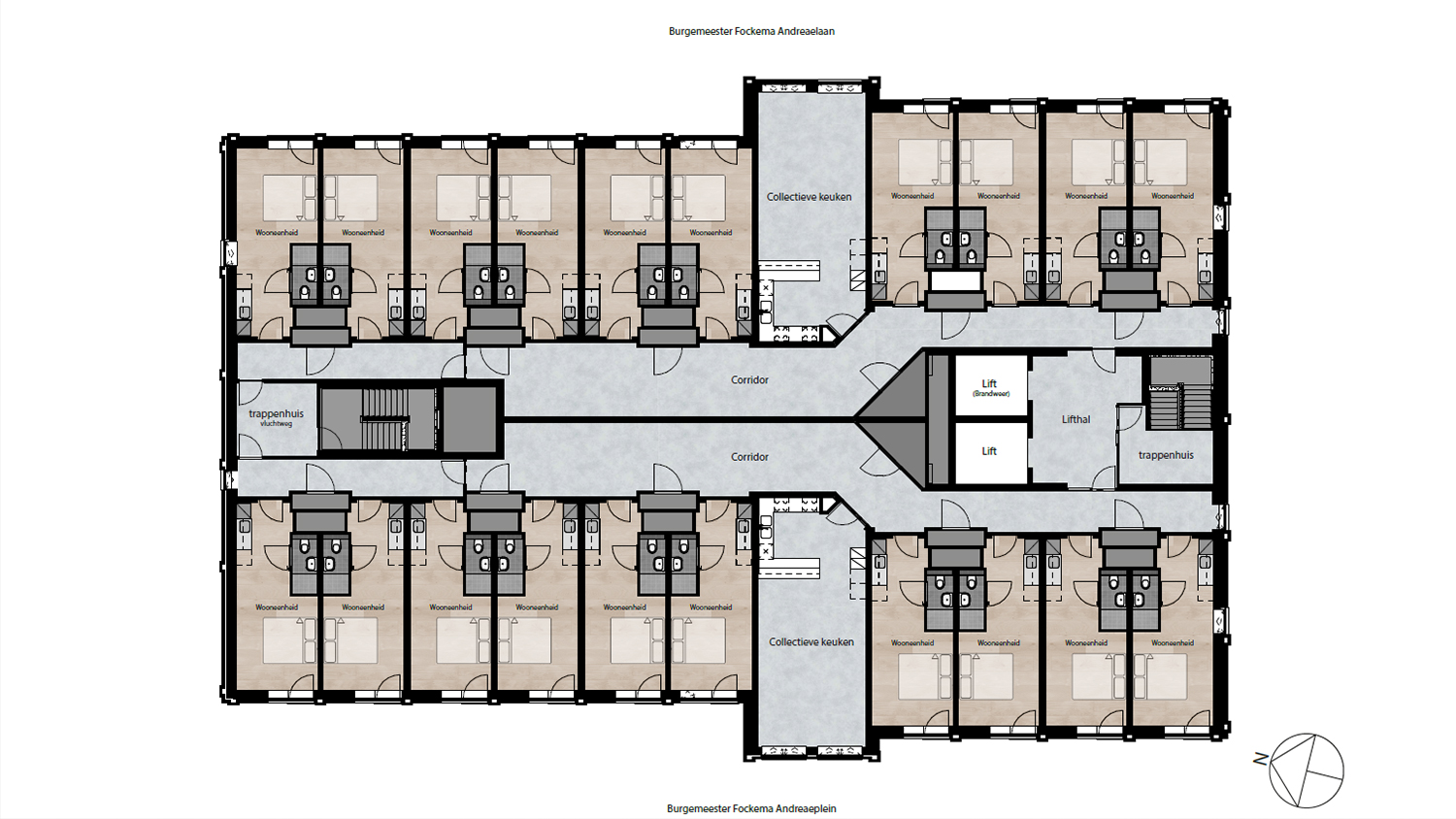 "Persoonlijk contact staat bij ons hoog in het vaandel", vervolgt Jochems. "Daarom kunnen de toekomstige bewoners elkaar ontmoeten bij de studieplekken, het washok of op het terras bij de koffiecorner." Naast een eigen keukenblok wordt er per tien bewoners ook een gezamenlijke woonkamer met kookvoorzieningen ingericht. Een voorwaarde is wel dat twee van de tien bewoners internationale studenten moeten zijn. De woontoren zal dus zo’n 64 internationale studenten huisvesten, vertelt Jochems. "Aangezien het voor internationale studenten moeilijker is een kamer te vinden, geven we ze op deze manier een betere kans op een verblijfplaats." SSH komt hiermee tegemoet aan de wens van de universiteit en de gemeente Utrecht om de woonsituatie van buitenlandse studenten te verbeteren.