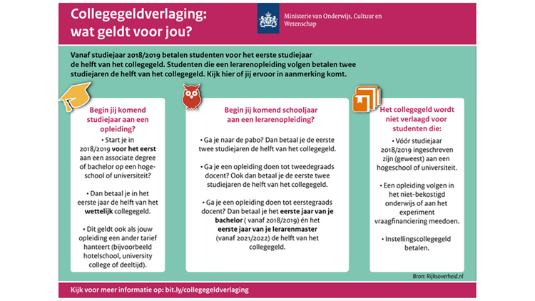 Voor wie geldt de halvering van het collegegeld 2018-2019 wel en voor wie niet?