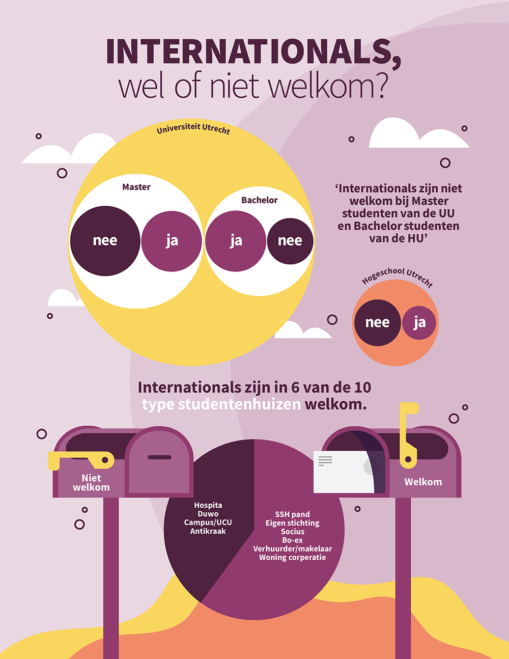 Heb je liever alleen Nederlandse huisgenoten, of zijn internationals in jouw studentenhuis meer dan welkom? DUB en Trajectum, de nieuwssite van de Hogeschool Utrecht verspreidden eind oktober een enquête met deze vragen onder Nederlandse studenten in Utrecht om te kijken hoe welkom internationale studenten zijn. Studenten van de minor Datavisualisatie & Infographics stelden een vragenlijst samen, verzamelden de data en maakten er verschillende infographics van.