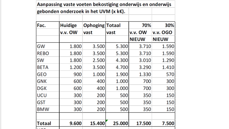 De Universiteitsraad is op 26 april akkoord gegaan met de verdeling van deze structurele middelen voor de faculteiten.