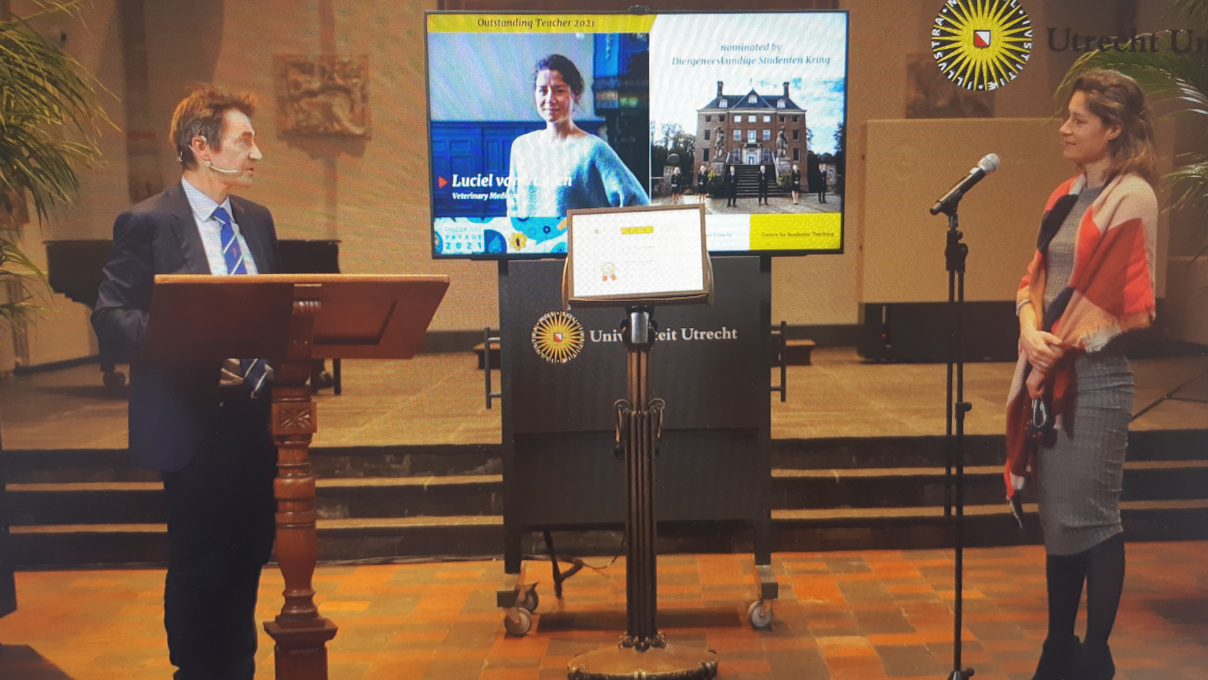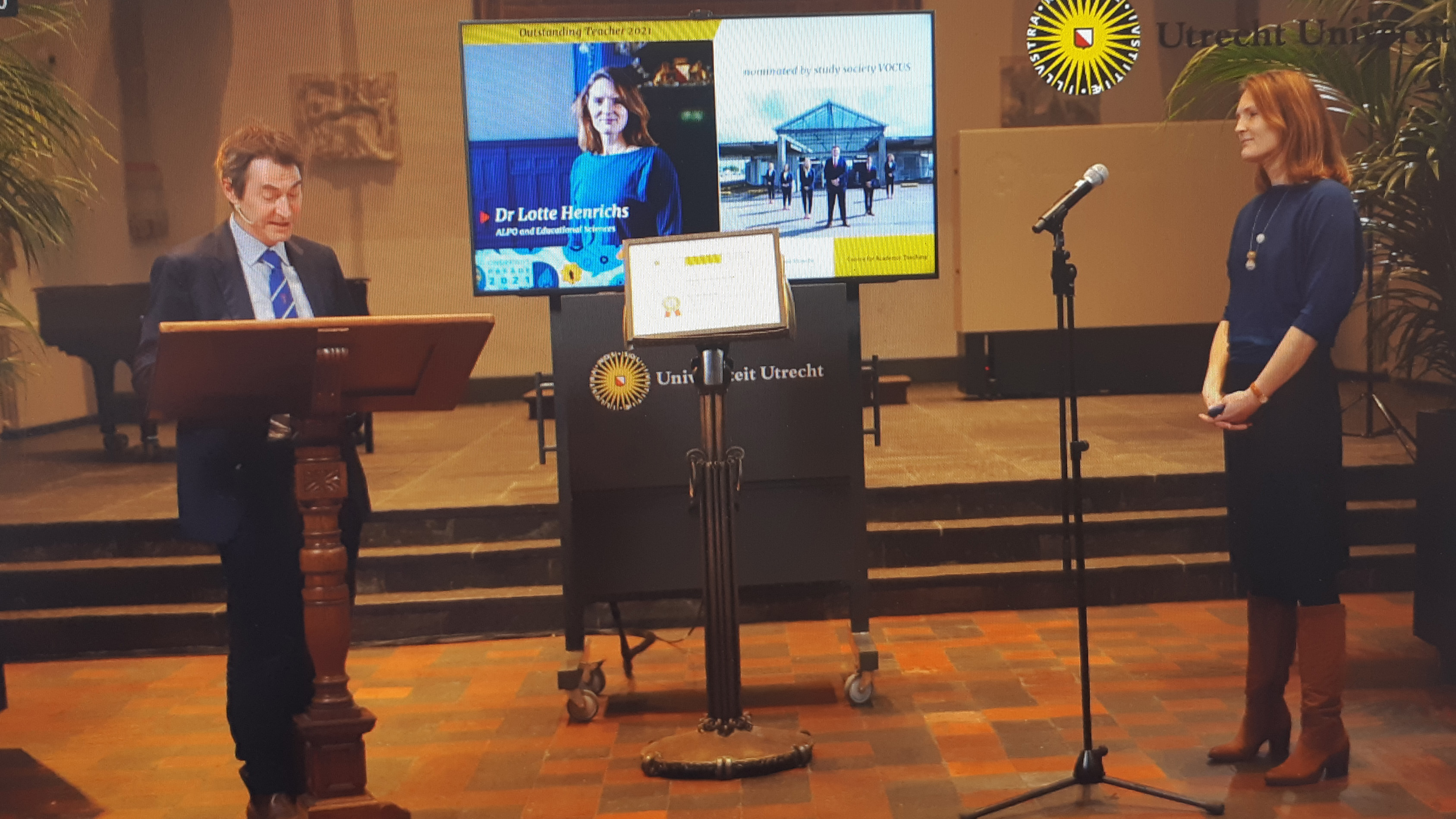 De uitreiking vond plaats tijdens de jaarlijkse Onderwijsparade. Juryvoorzitter Ronald Bleys, hoogleraar Geneeskunde en zelf oud-winnaar, stond alleen in de aula van het Academiegebouw. In zaal 1636 zaten de zes genomineerden.